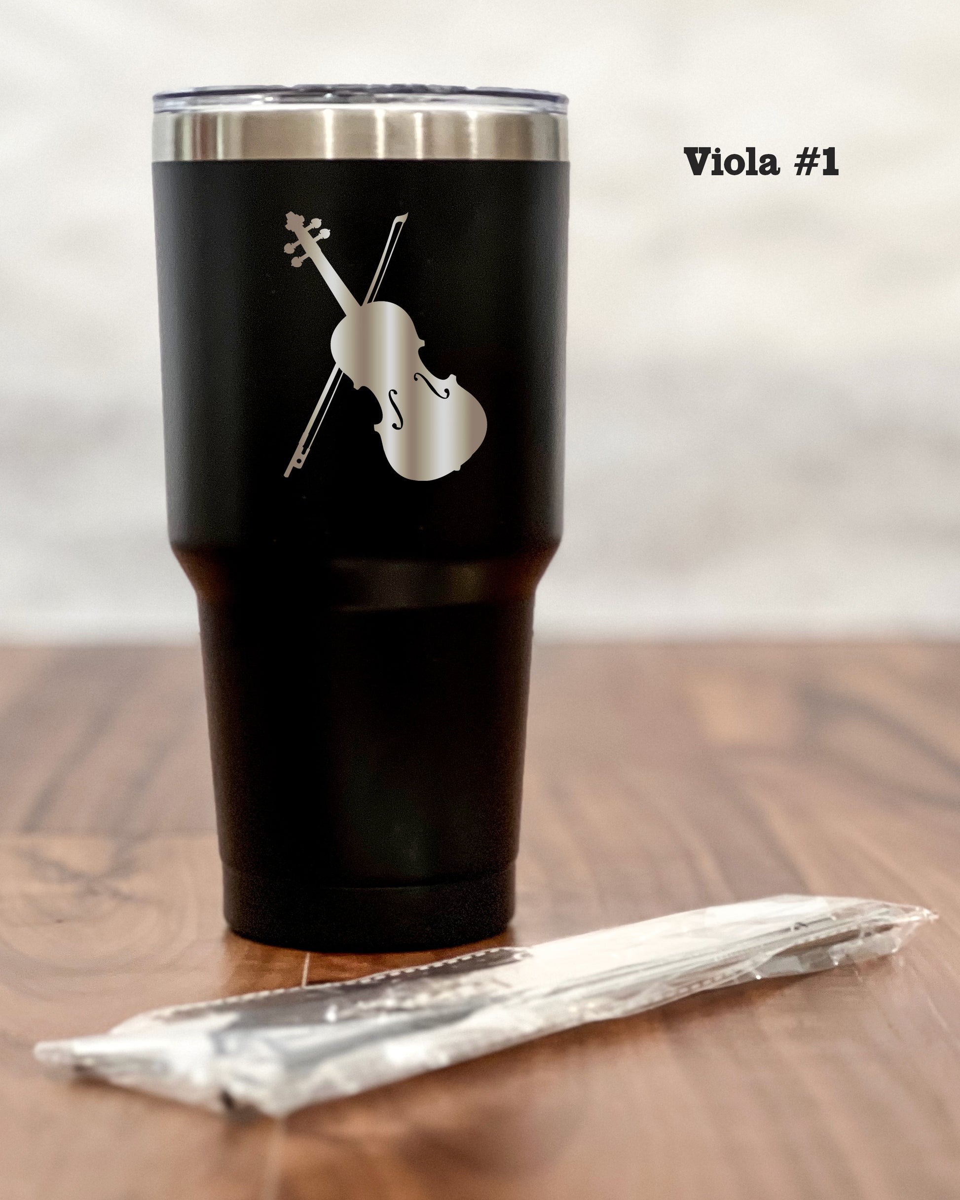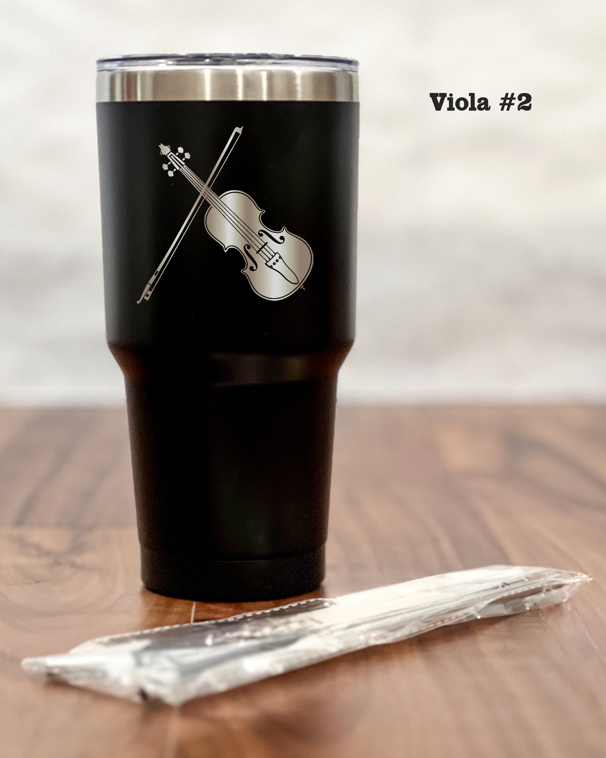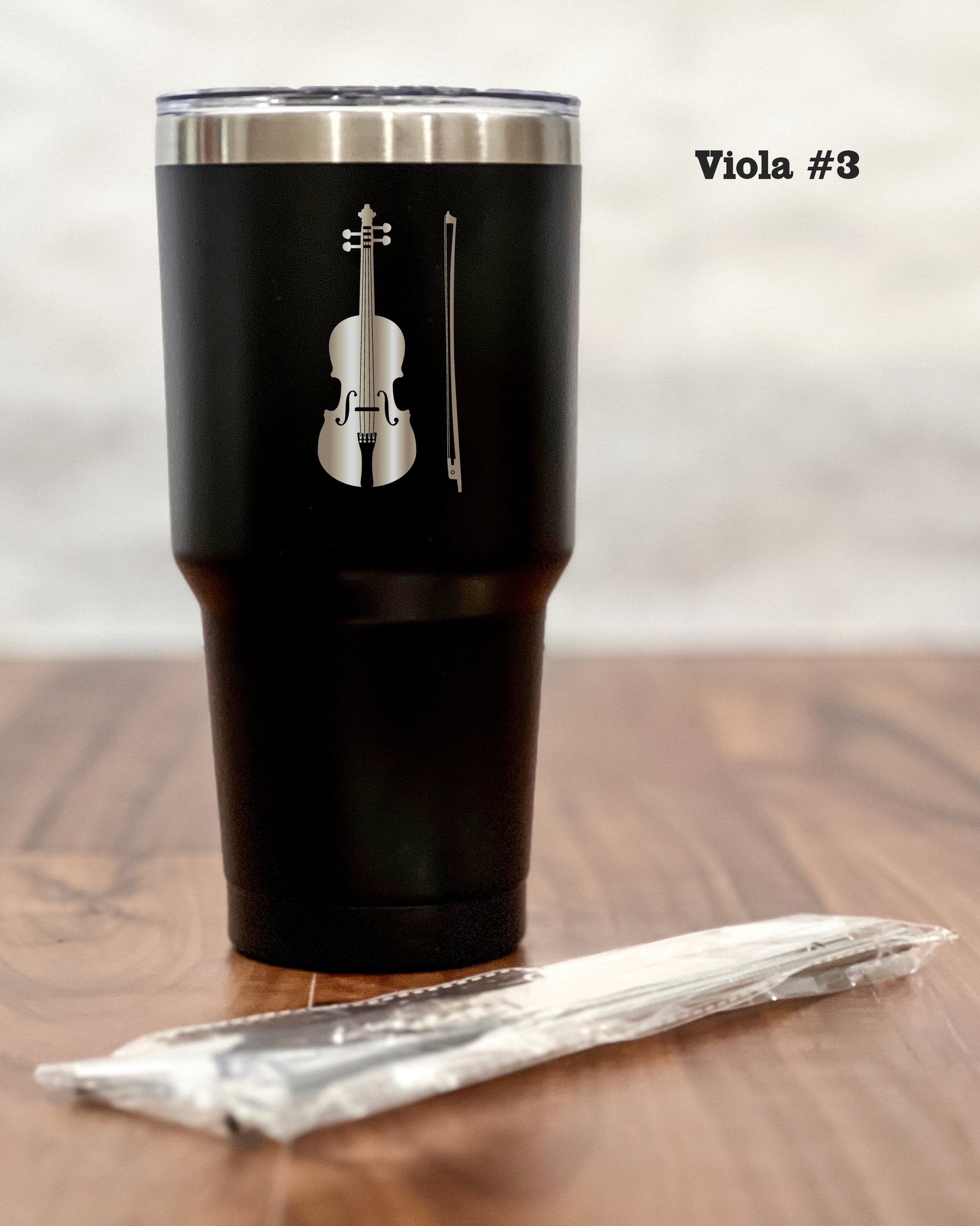 Crafted from premium stainless steel, the sleek black exterior exudes sophistication and modernity, making it the perfect companion for any occasion – be it your morning commute, an outdoor adventure, or simply lounging at home. But what truly sets the tumbler apart is its laser-engraved silhouette of a Viola – a symbol of harmony, passion, and the timeless beauty of music. This artful detailing adds an air of refinement to your tumbler, making it a statement piece that reflects your unique personality.