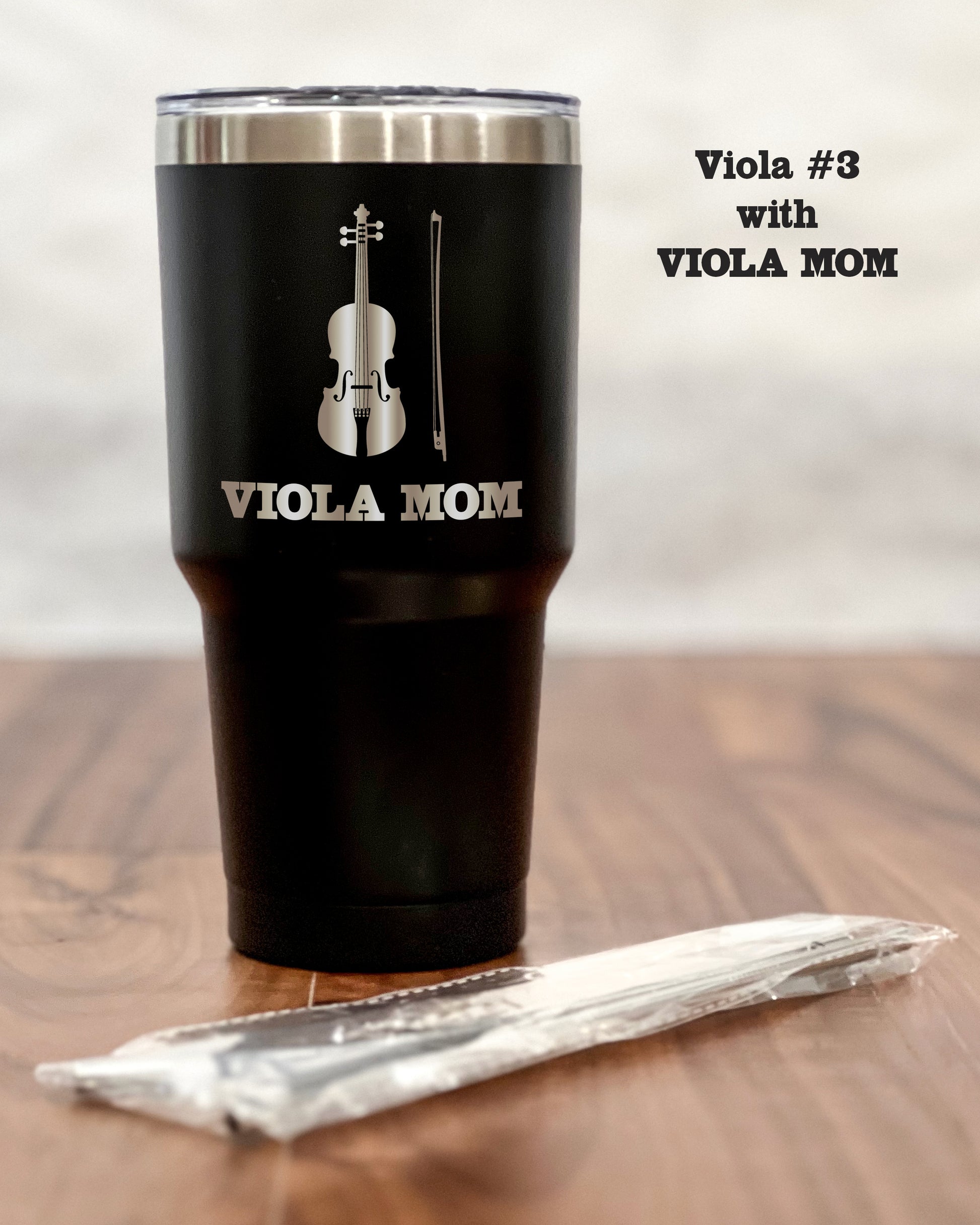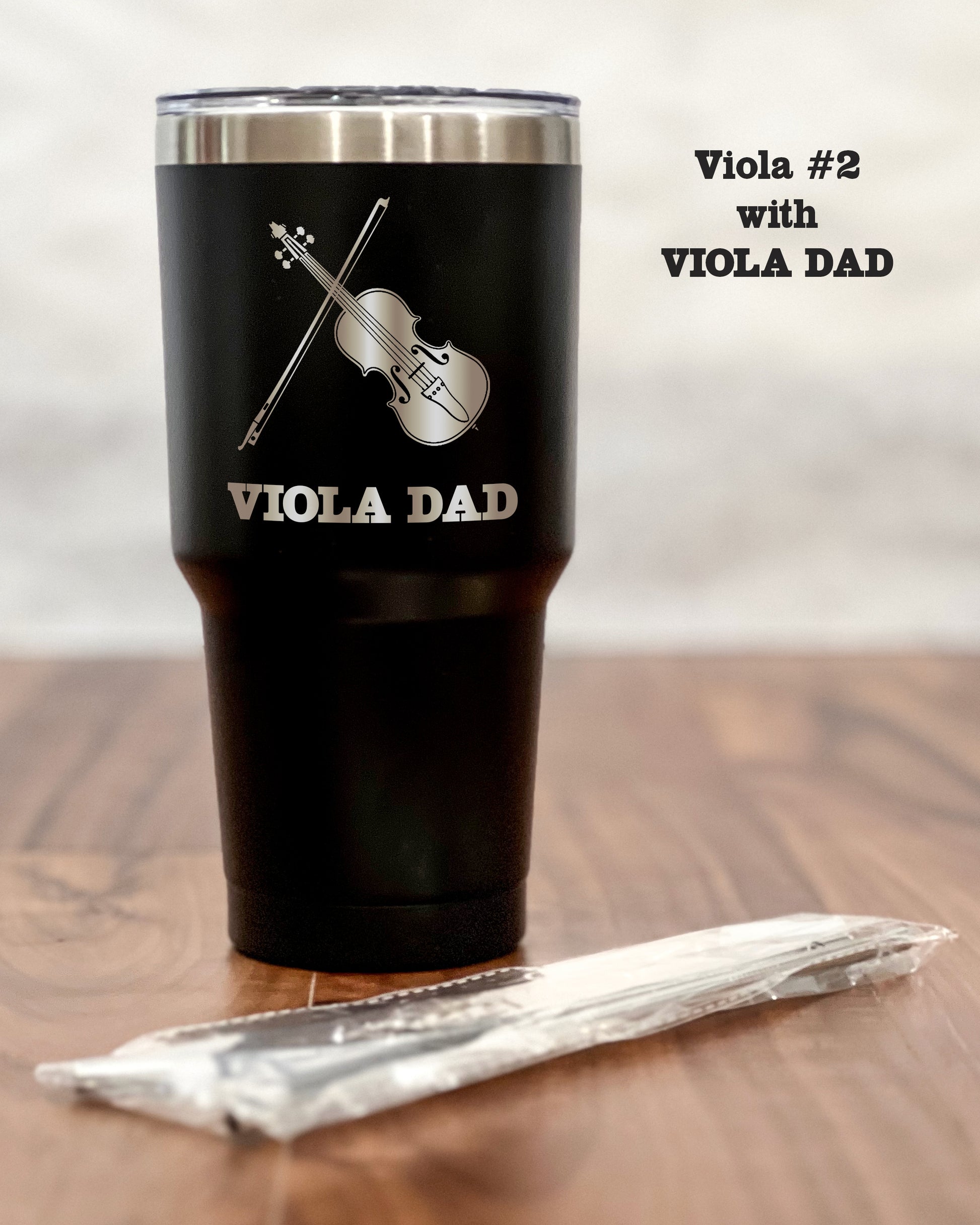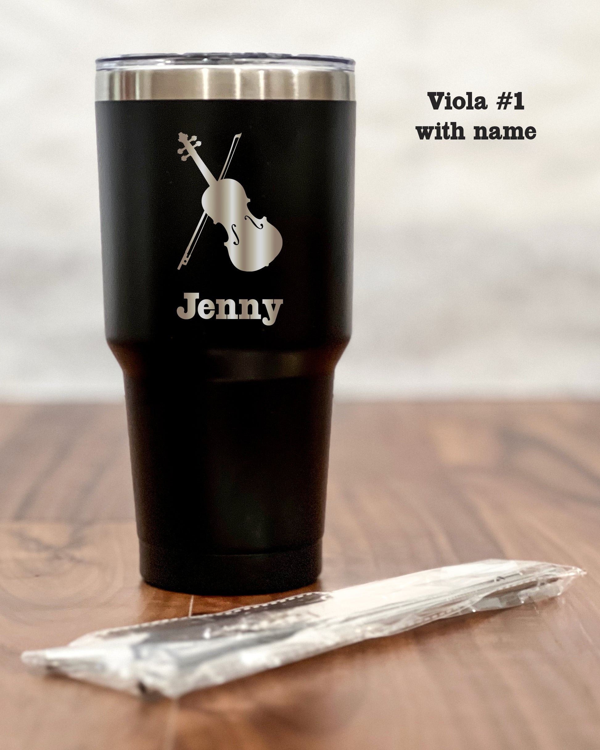Crafted from premium stainless steel, the sleek black exterior exudes sophistication and modernity, making it the perfect companion for any occasion – be it your morning commute, an outdoor adventure, or simply lounging at home. But what truly sets the tumbler apart is its laser-engraved silhouette of a Viola – a symbol of harmony, passion, and the timeless beauty of music. This artful detailing adds an air of refinement to your tumbler, making it a statement piece that reflects your unique personality.