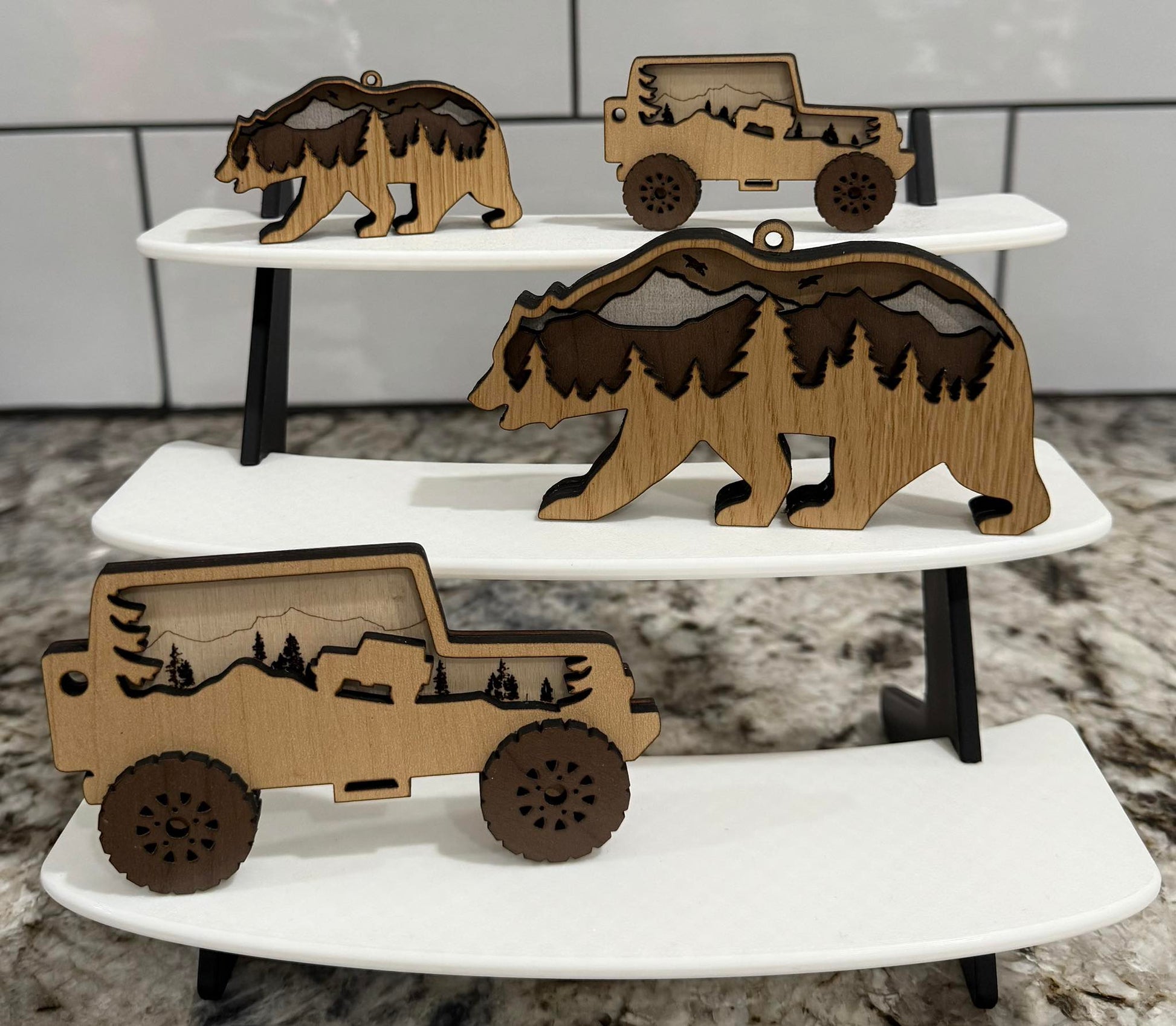 Bring adventure and charm to your day with our layered bear and Jeep ornaments—available in two perfect sizes! Choose the larger ornament to hang proudly on your tree or display year-round, or go for the smaller version to use as a keychain or bag tag for a daily dose of wanderlust. Each piece features multiple laser-cut layers for rich detail, making them a unique gift for nature lovers, Jeep enthusiasts, and anyone with a spirit for the wild.