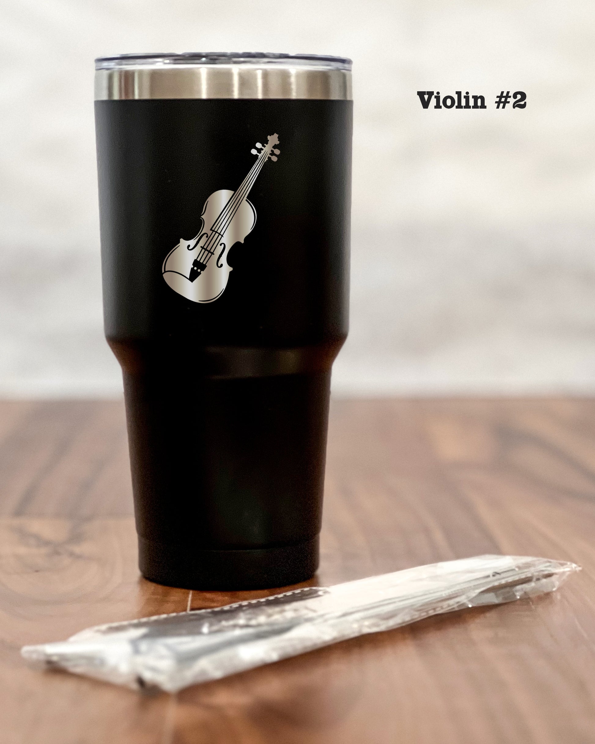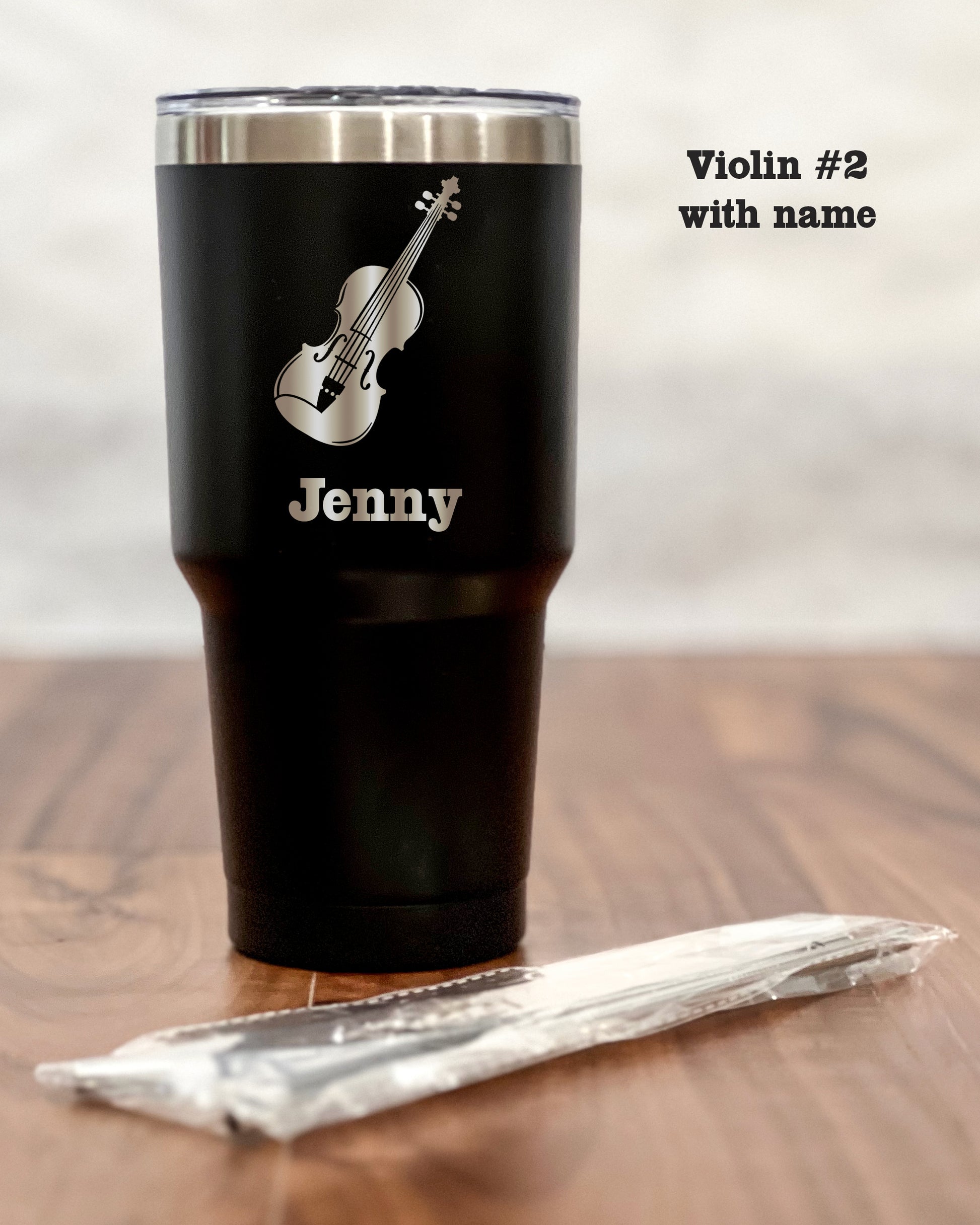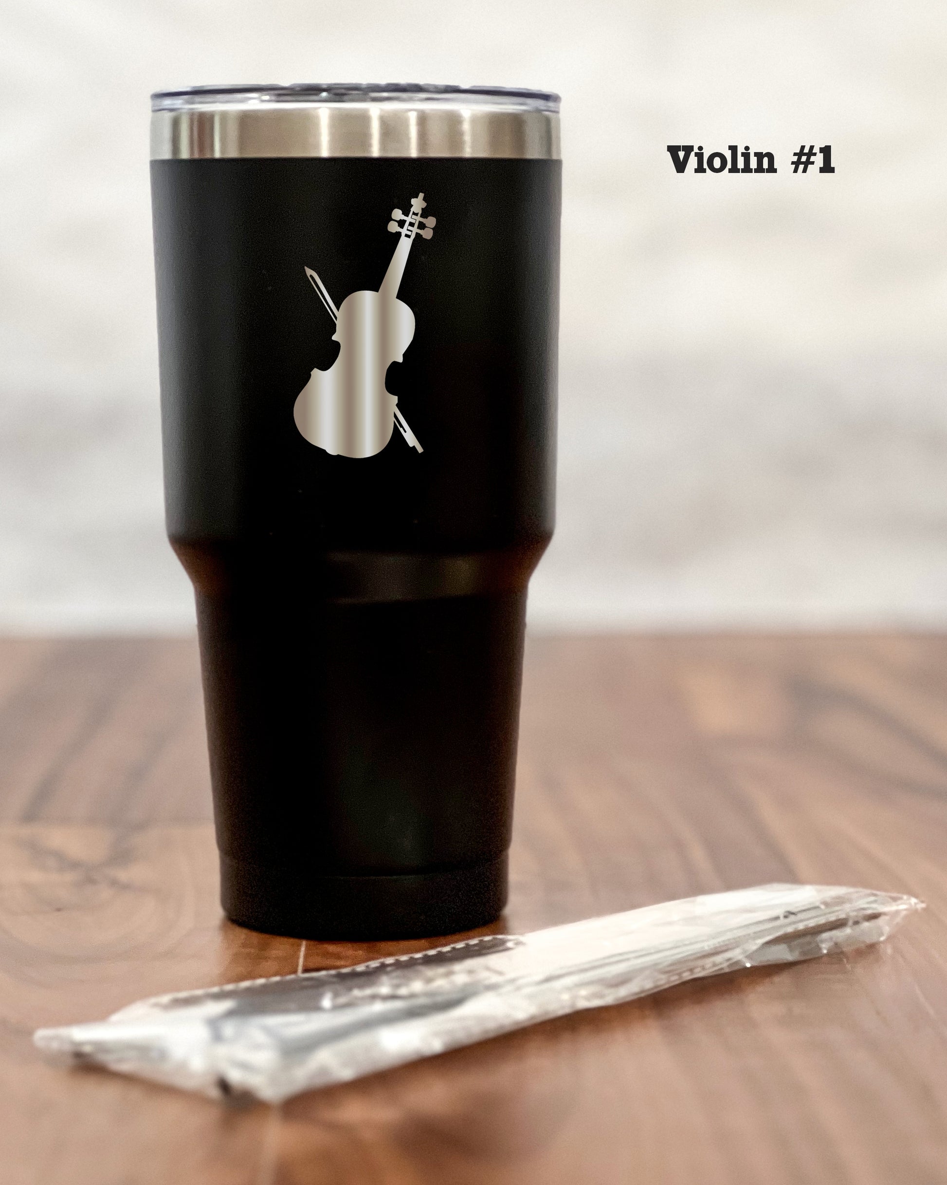 Our Beautiful Black 30oz tumbler with an elegant engraved Violin.