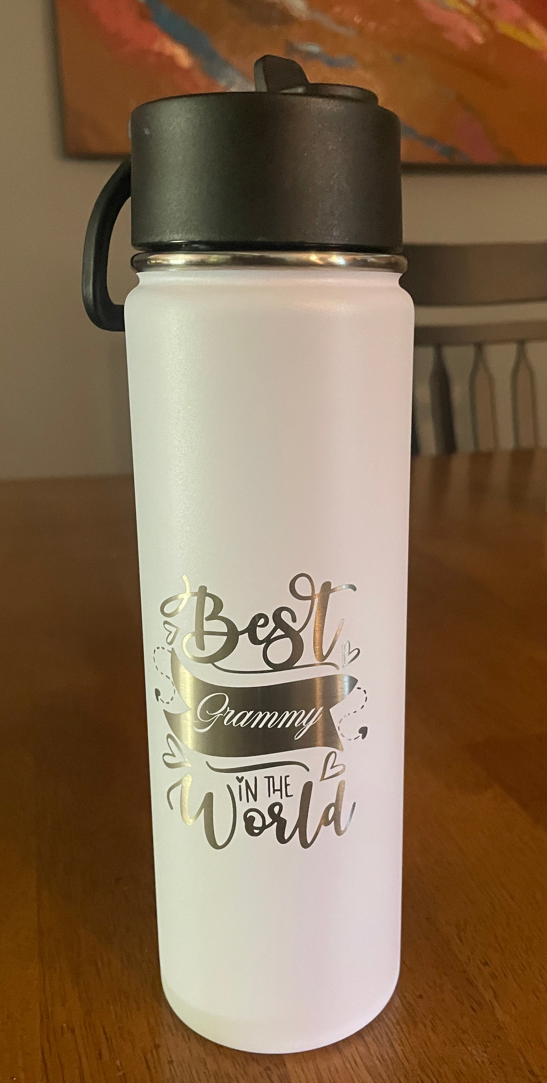 Beautiful 20oz Water Bottle with your chosen image on it. These make awesome teacher gifts that they are proud to carry around.