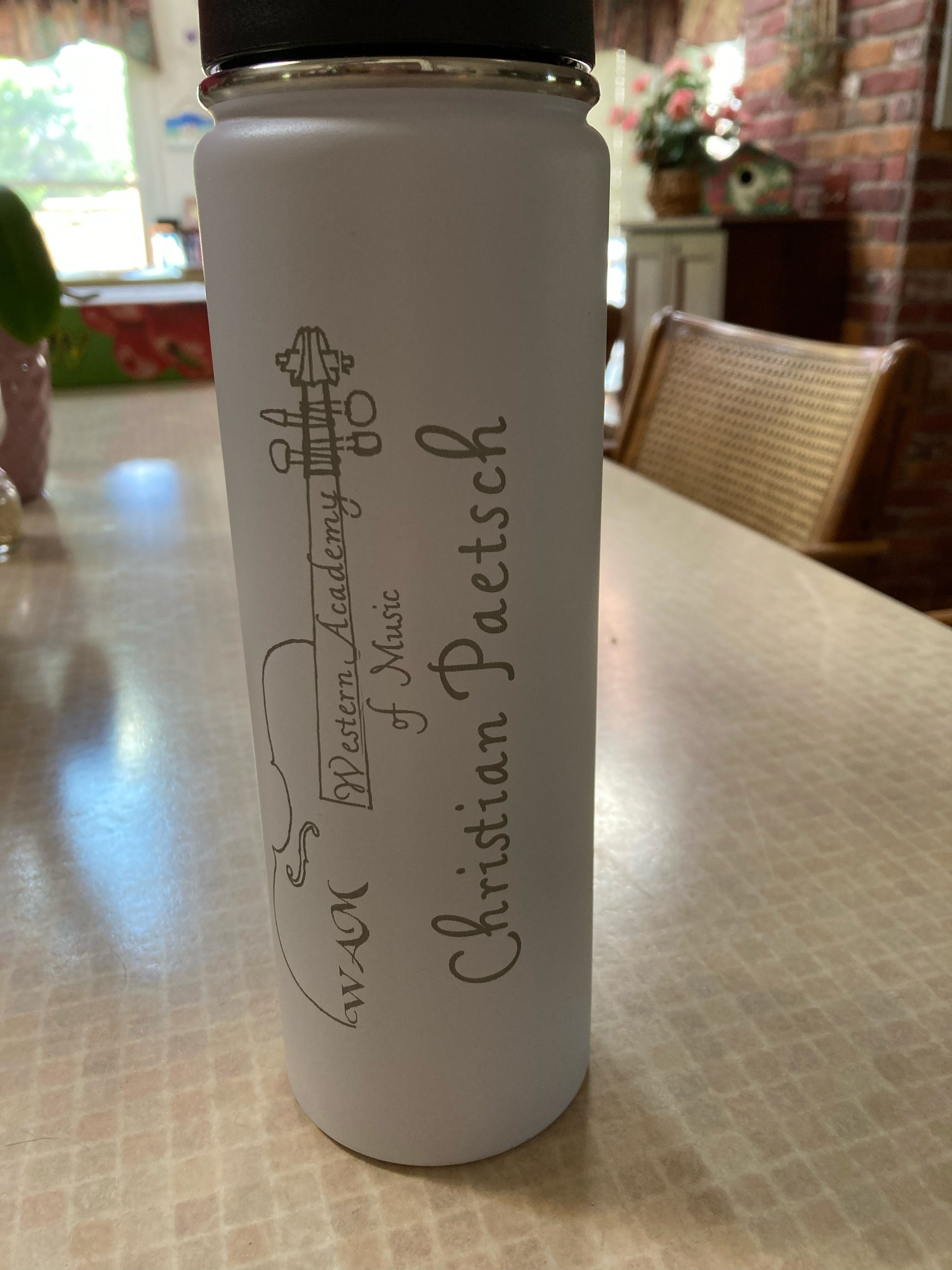 Show off your passion for music and stay refreshed with the exclusive Western Academy of Music water bottle! Featuring a sleek design, durable build, and the official Western Academy of Music logo, add your or a loved ones name to this bottle. These bottle are perfect for students, parents, and proud supporters of the arts.